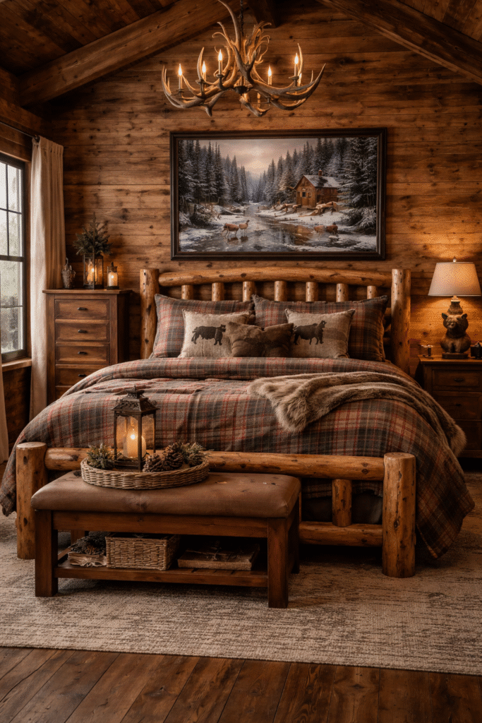 In many cabins, artwork becomes the visual centerpiece of a room. A large painting above a fireplace, sofa, or bed can help anchor the space and create a sense of balance within the interior.